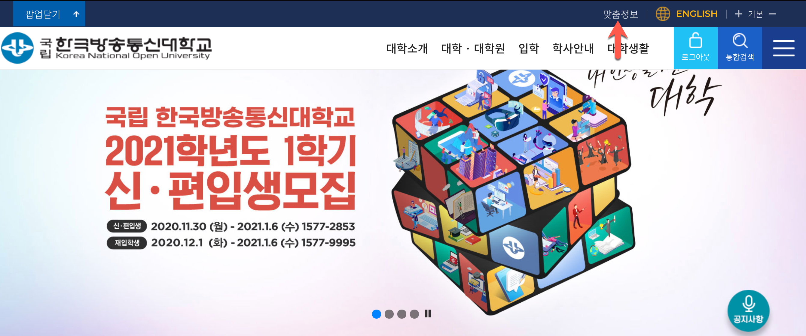 ; 학교 홈페이지에 로그인하면 상단의 맞춤정보를 제일 많이 이용하게 됩니다.