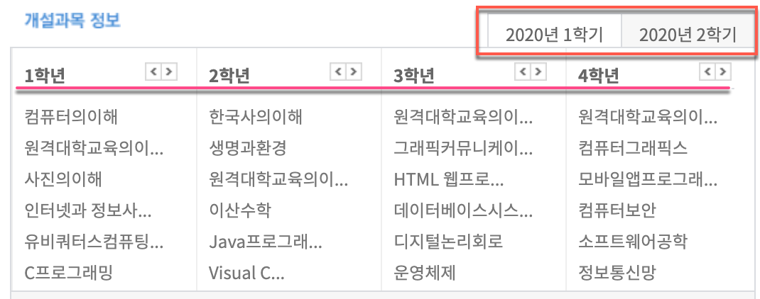 1~4학년을 골고루 나눠서 들었던 저는 아래 표로 예를 들면