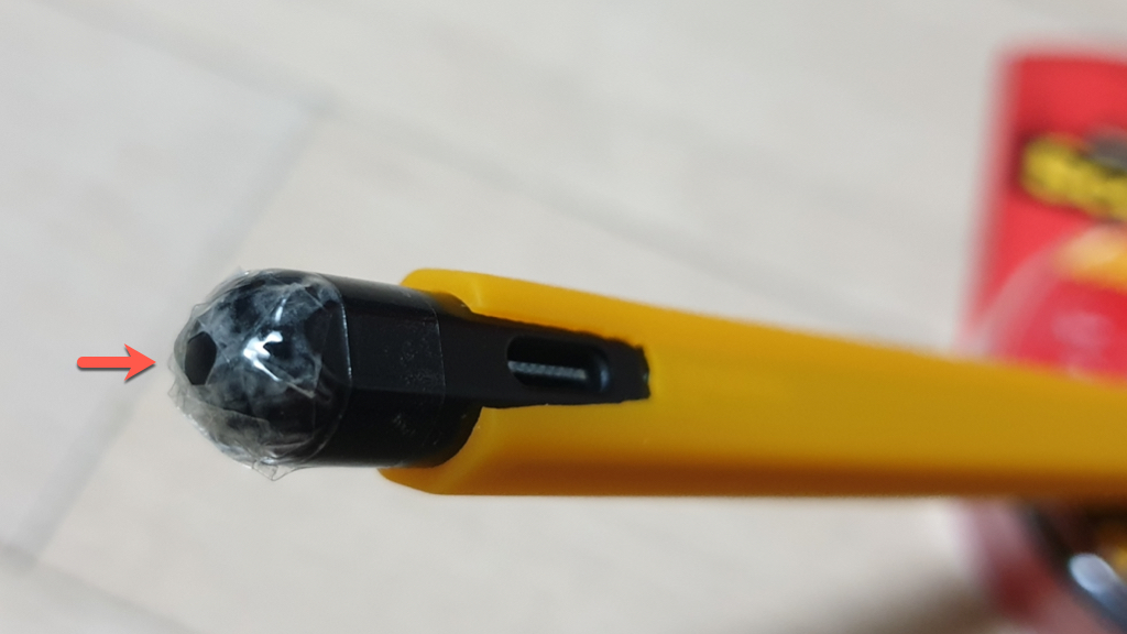 이렇게 하신 후 켜고 끄기를 펜을 돌려가며 터치해보면 원하지 않게 터치가 잘 부분이 있을꺼에요. 거기만 좀 더 테이프를 작게 잘라서 덧 붙여주면 완료된 것입니다. 이제 원하던 터치 꼭지 끝부분만 터치해서 켜고 꺼질 수 있게 됐어요.