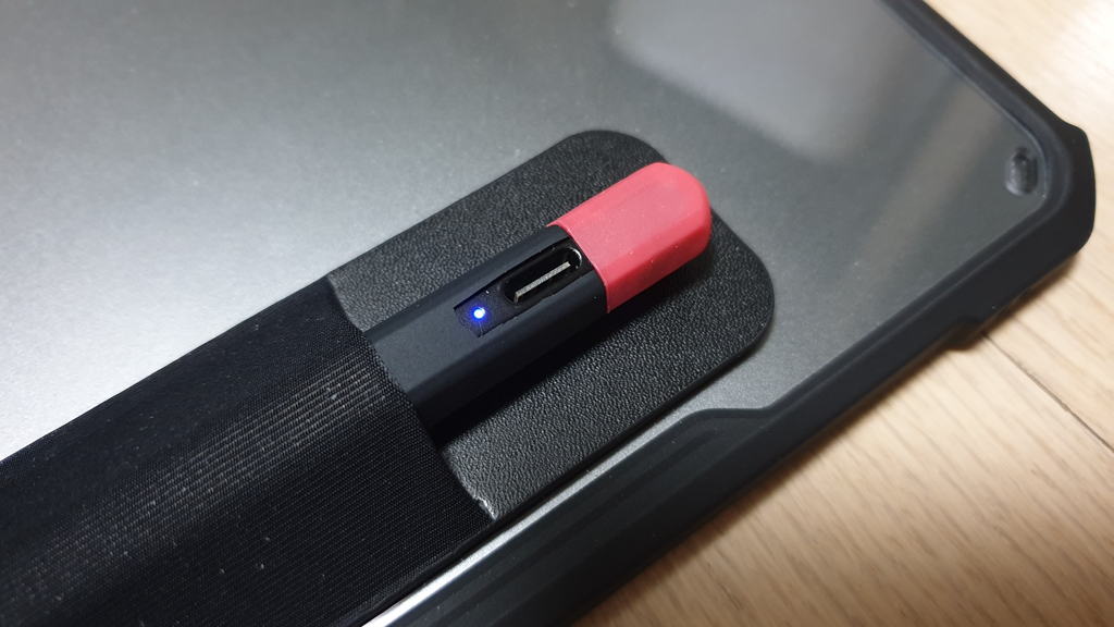 참고로 저처럼 펜슬 케이스가 있다면 테이프 두르고 마지막에 씌워두면 깔끔하게 가려주며 켜짐 버튼의 터치 민감도가 더 떨어집니다. 없어도 투명테이프만으로도 충분히 낮춰주니 확실히 효과있습니다. 아래 사진을 보고 따라하시면 되요.^^