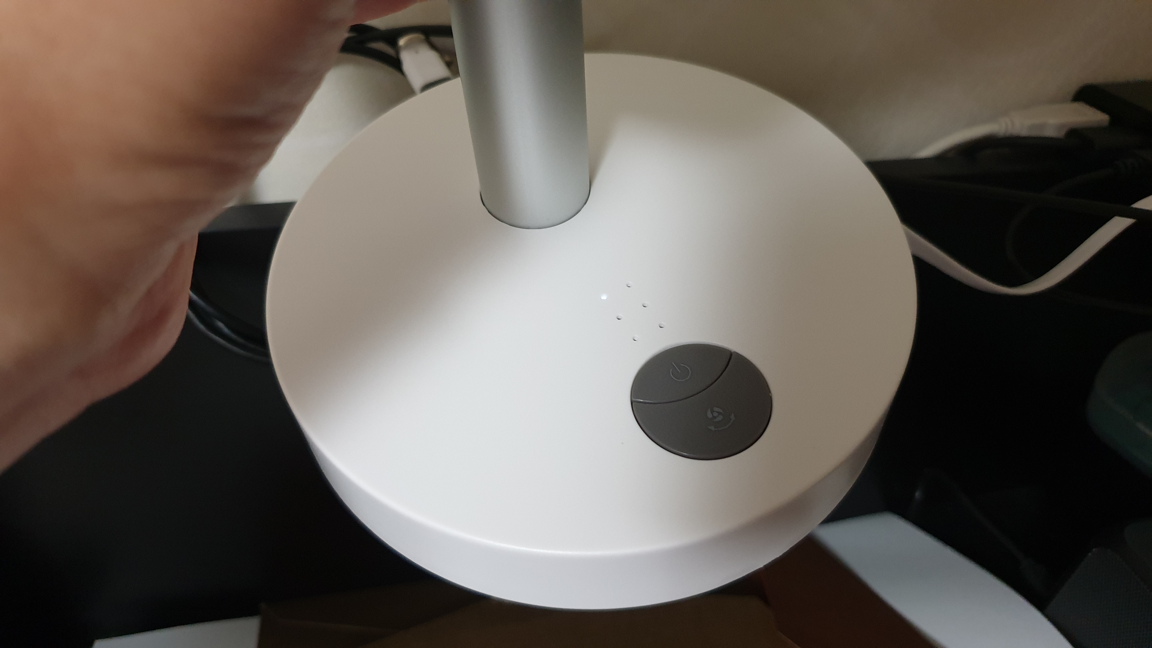 아래 사진처럼 택배 받고 안켜지던 충전 LED도 다시 깜박이며 스위치를 누를 때 마다 갖고있던 다른 선풍기처럼 잘 동작하네요. 제 경우 조립불량으로 보이는 단순 고장이라 쉽게 조치가 되었습니다.